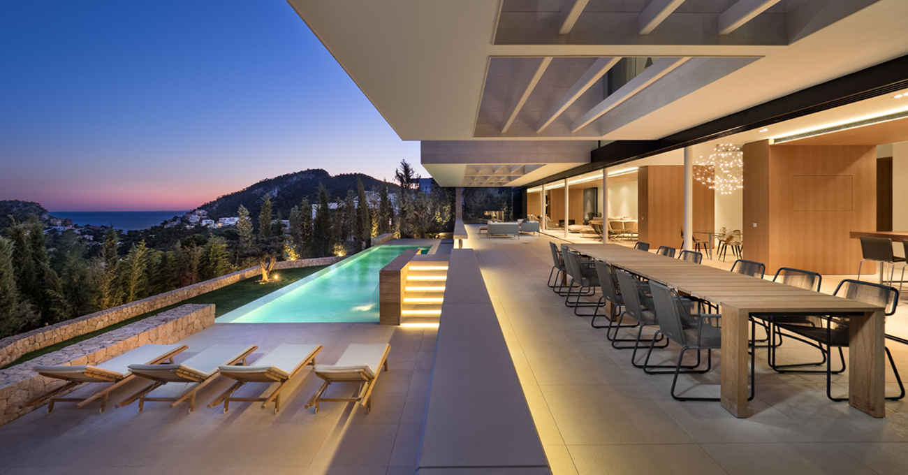 Ubicada en la prestigiosa zona de Monport – Port d’Andratx, esta villa de lujo en Port d’Andratx es una vivienda unifamiliar aislada con piscina que destaca por su arquitectura contemporánea, su alto nivel técnico y su cuidada selección de materiales nobles. Diseñada por García-Ruiz Arquitectos y ejecutada por Construcciones Llull Sastre, el proyecto se enmarca dentro de la edificación residencial de alto standing en el suroeste de Mallorca.