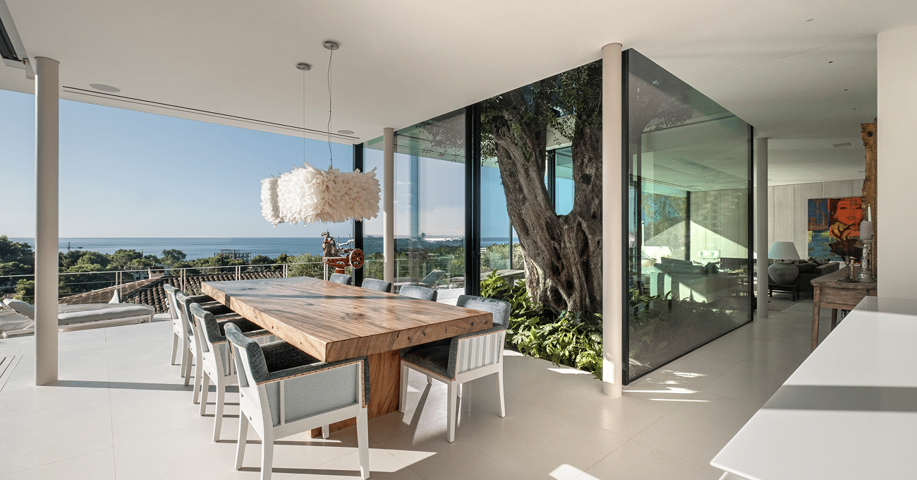 Ubicada en la exclusiva zona de Portals Nous, en el suroeste de la isla, Villa Seguí es una elegante villa de lujo en Portals que combina arquitectura contemporánea, grandes superficies acristaladas y una cuidada integración interior-exterior. Diseñada por los aqruitectos Angel Sánchez-Cantalejo & Vicente Tomas y ejecutada por Construcciones Llull Sastre, esta propiedad refleja los más altos estándares en la construcción de viviendas de alto standing en Mallorca.